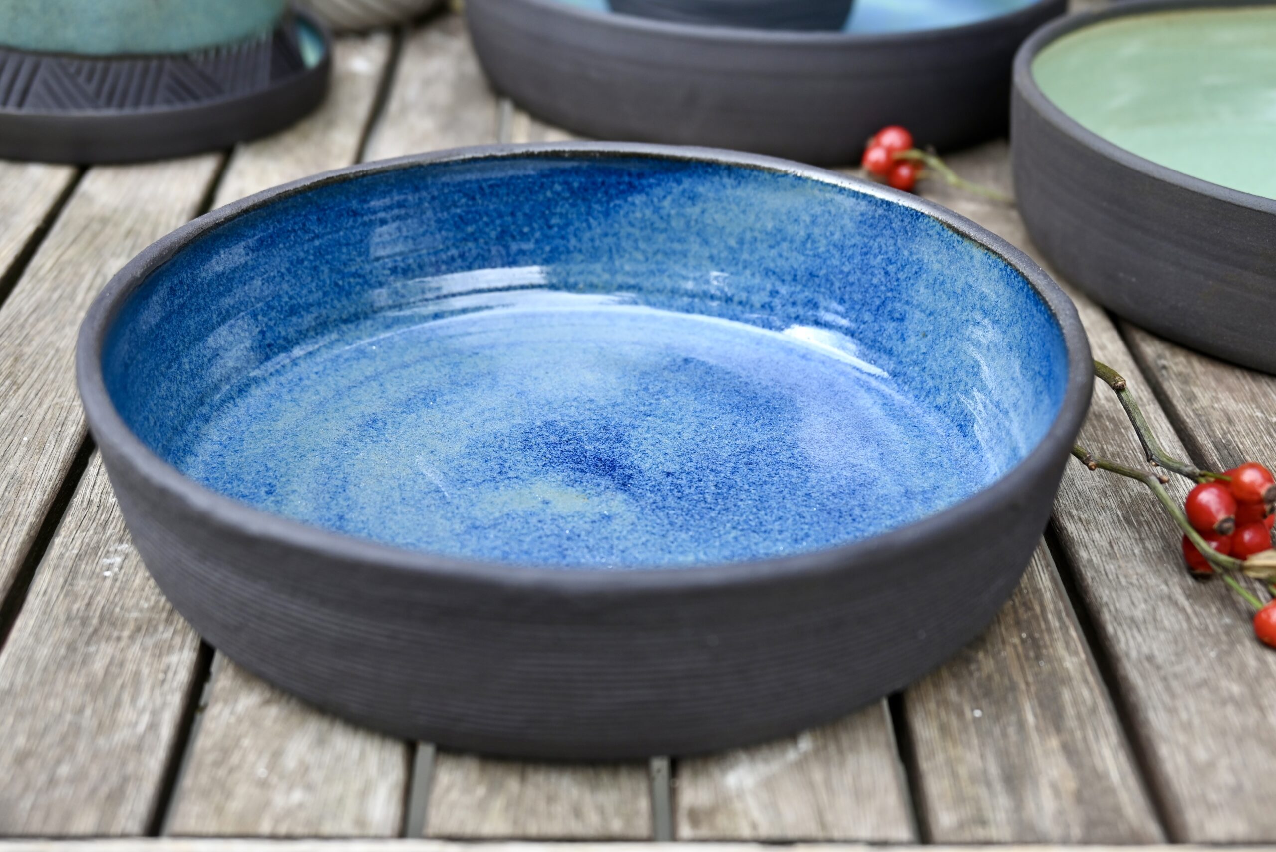 Nagy méretű kék tál feketével